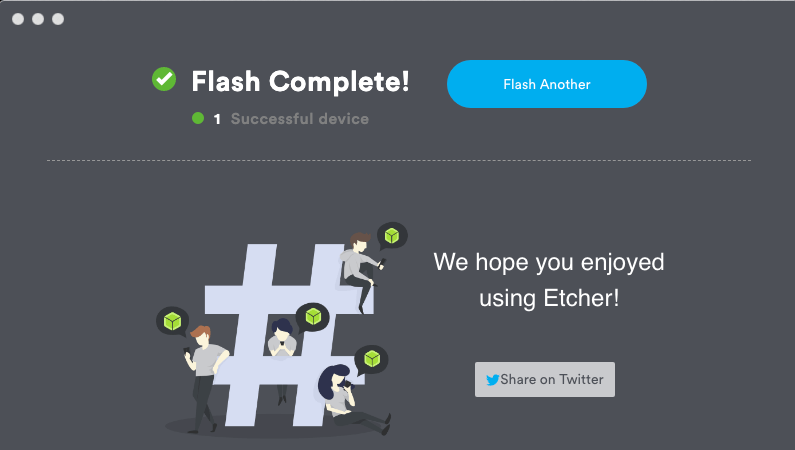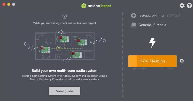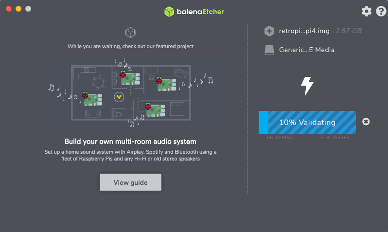 Follow Etchers instructions to flash your Micro SD Card, the process takes a couple of minutes, before the image is verified. If successful, the card is automatically ejected from your device and you will need to physically take the card out and put it back in your device again.