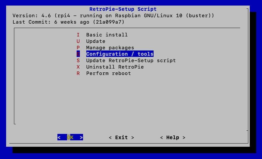 If you haven’t connected using a USB Keyboard, then you will need to configure the Pi to connect to your devices. RetroPie boots to Emulation Station by default, and without a connected keyboard this may seem difficult at first. This is one of the reasons for connecting to the command line.
