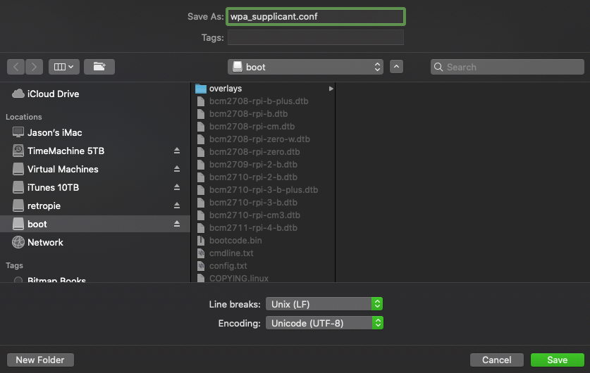 Re-Insert your SD Card to your device as you will need to create two files to enable SSH and WiFi connectivity. If you are a Windows User, Skip Here