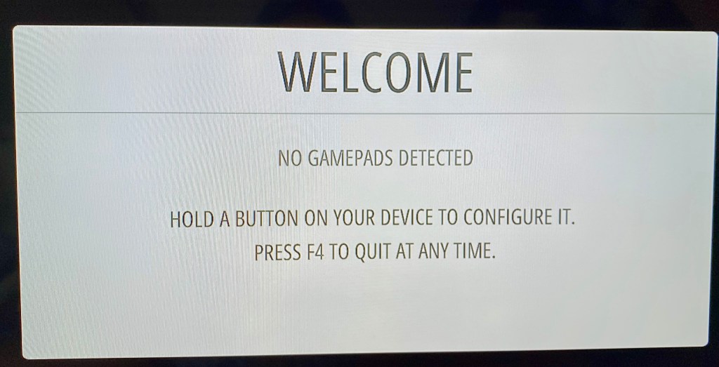 The first time may take a short time to start, however you will be greeted with the following screen shots. You may need to follow the instructions on your keyboard and mouse to start pairing mode. If you are using the 8Bit Do SN30 Pro+, I’ve set this into X-Input/Windows Mode by pressing Start + X button simultaneously, before pressing the SYNC Button near the power port.