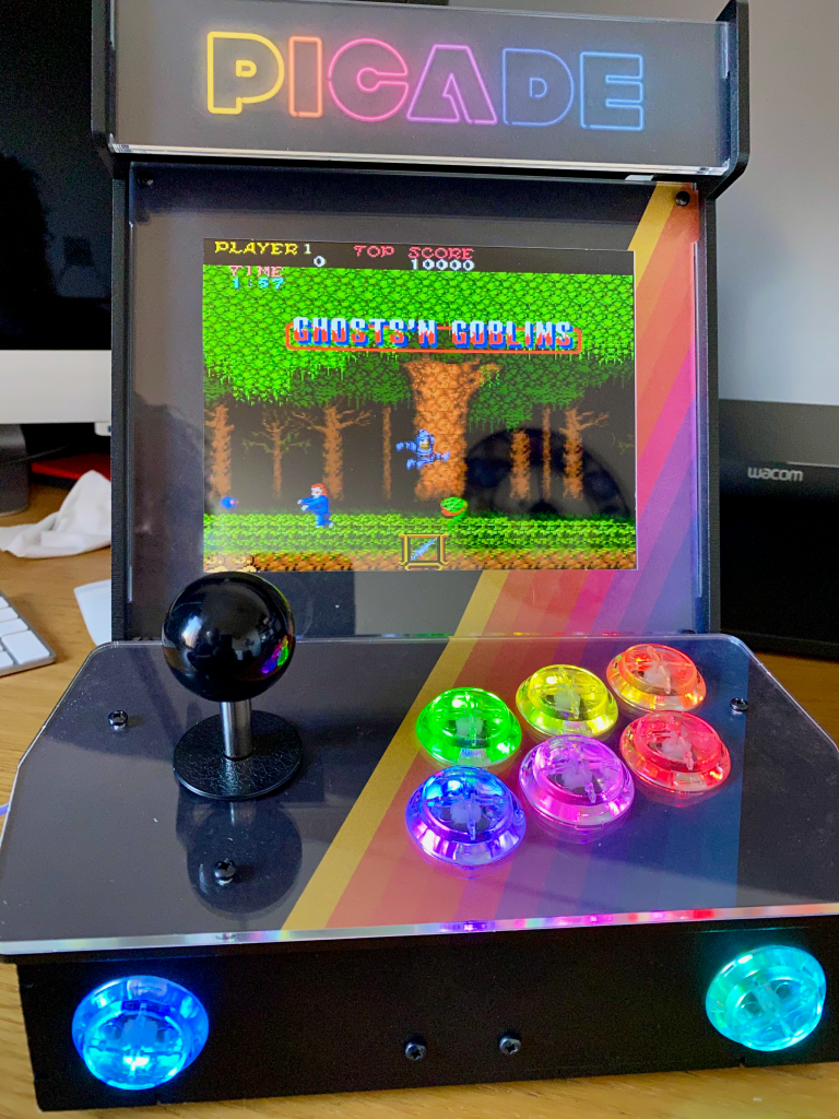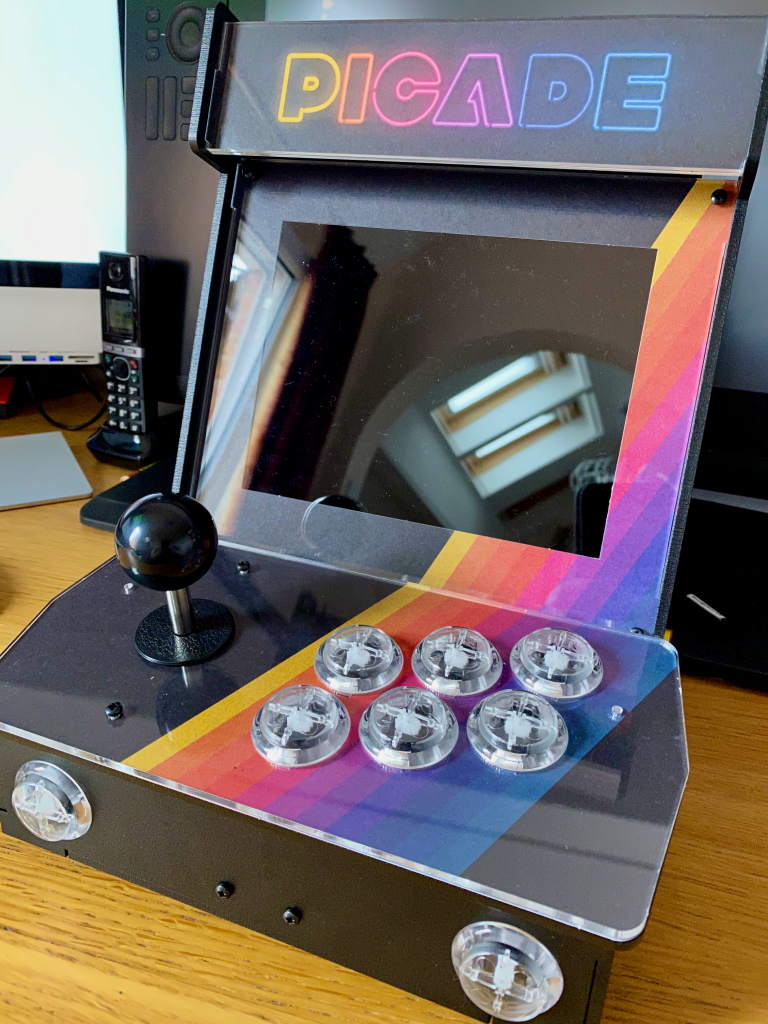 The best thing is, this gives you a fully functional mini-arcade cabinet for a reasonable price point, and only your imagination limits how you can further customise this. Don’t like the supplied artwork? No problem at all, print your own and sandwich inbetween the perspex plates provided. Templates are provided on the official GitHub repository: https://github.com/pimoroni/picade/blob/master/picade-docs/Picade-Retail-BYO-Art.pdf and the later model post 2018 https://github.com/pimoroni/picade/blob/master/picade-docs/picade-artwork-templates-a4.pdf