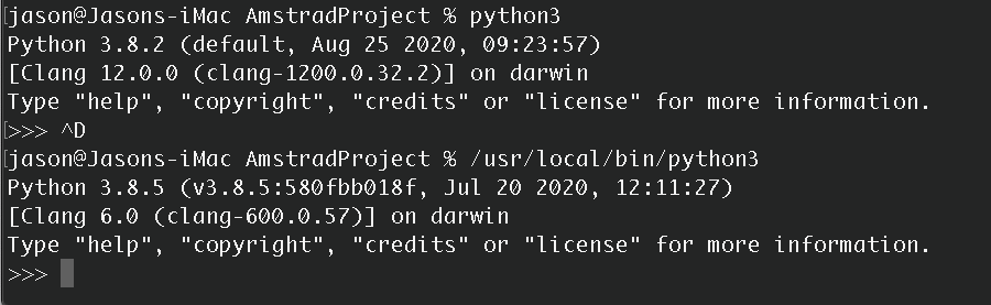 You can check the versions by using /usr/bin/python3 and /usr/local/bin/python3, the first thing is the CLANG version.