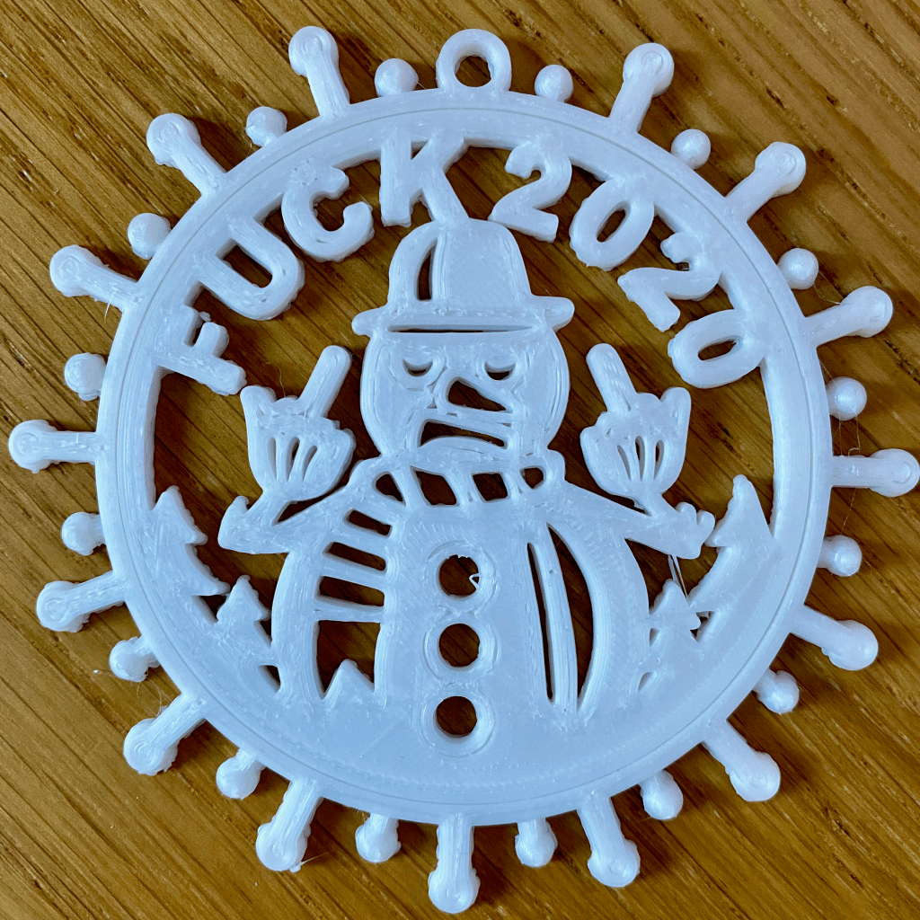 Without getting bogged down in detail (which I’ll cover in future posts), I thought I’d share a recent draft 3D Print which has proven popular amongst friends this festive period. What do you think? A festive tree ornament 2020 winner?
