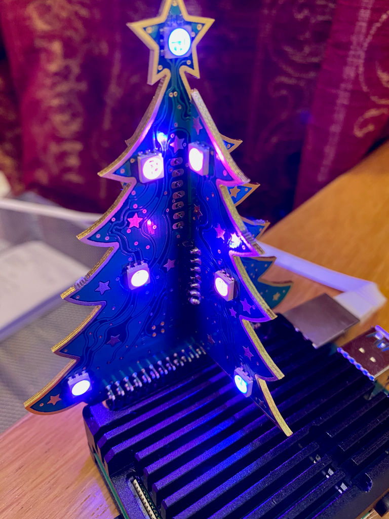 I purchased the Raspberry Pi 3D RGB Christmas Tree as a small desktop accessory, and also because I love anything with pretty lights that glow. If you’re interested, they’re available from most Pi stockist, though mine was from https://thepihut.com/products/3d-rgb-xmas-tree-for-raspberry-pi for about £18. I went for the pre-assembled version, you can purchase a cheaper version if you’re adept with a soldering iron and have some time on your hands. I preferred the SMD (Surface Mounted Diode) as it looks marginally better.