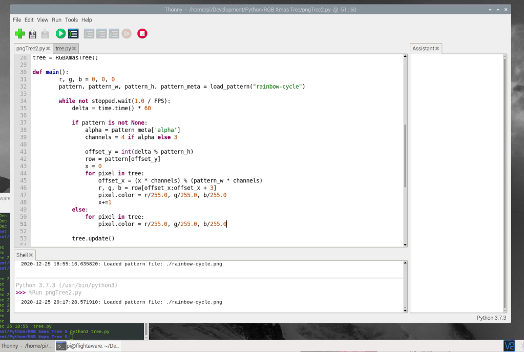 First things first. I needed to read a PNG file which contains the array of colours to cycle through the Christmas Tree. The Pimorini script contained simple re-usable code I could easily adapt…