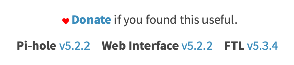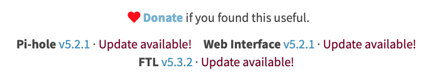 How do you know an update is needed? PiHole will give you a hint at the bottom of the Admin Portal Page. Navigate to the web portal and you will see a message in the footer of the webpage like below.