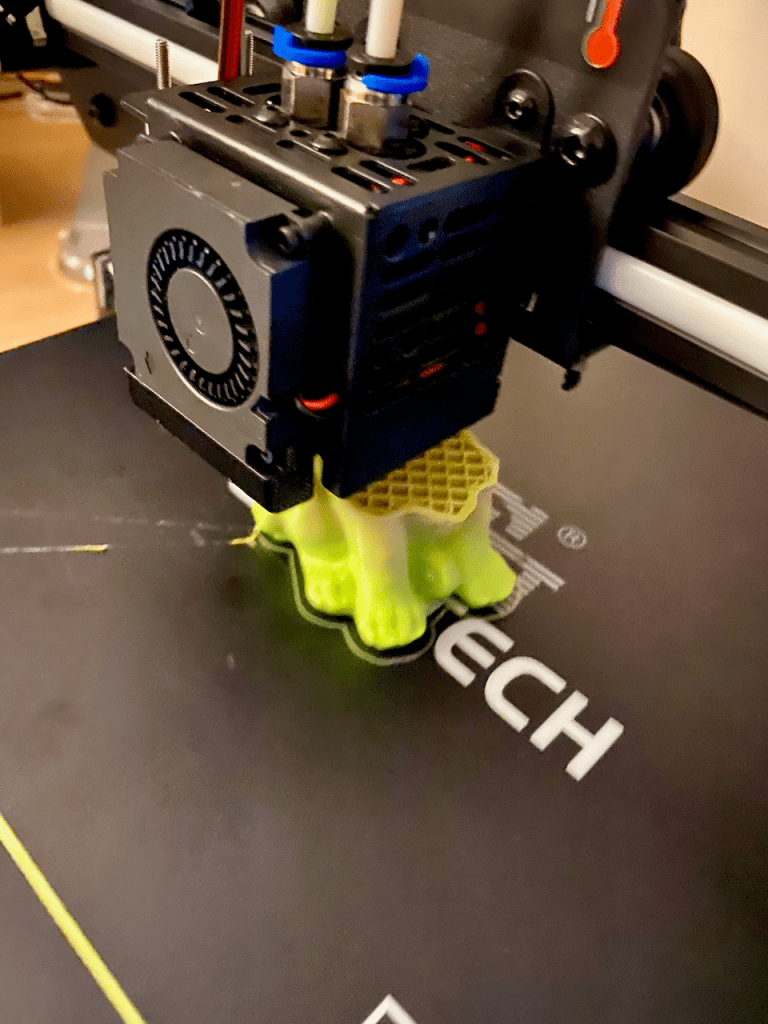 With the printer an included TF Card contains a mystery test print, I levelled the bed using the instructions included with the printer, using the levelling card and set the printer off for it’s first ever run!