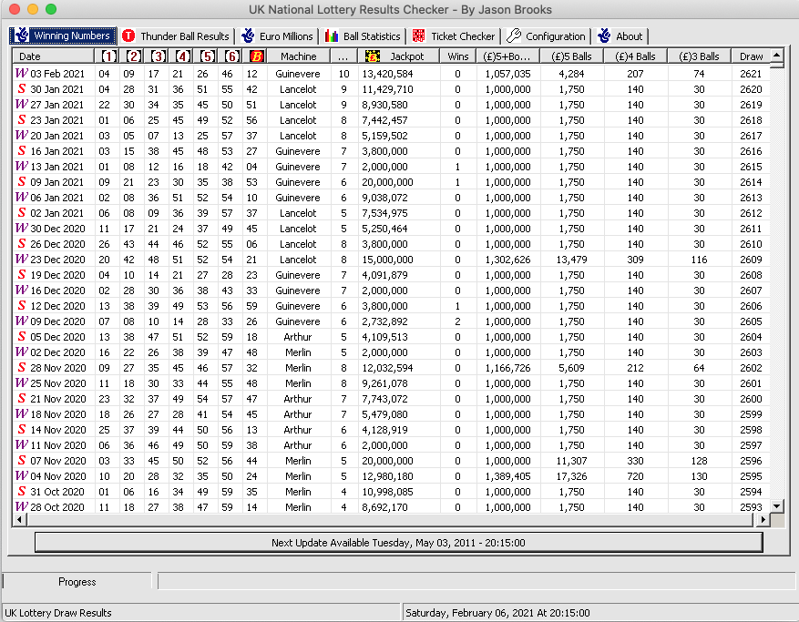 Over the years. the user community would email suggestions, bugs and about the occasional win. The software didn’t predict winning numbers, it could show you the most popular balls drawn by machine but no statistical analysis, though you can easily export the data into other software easily.