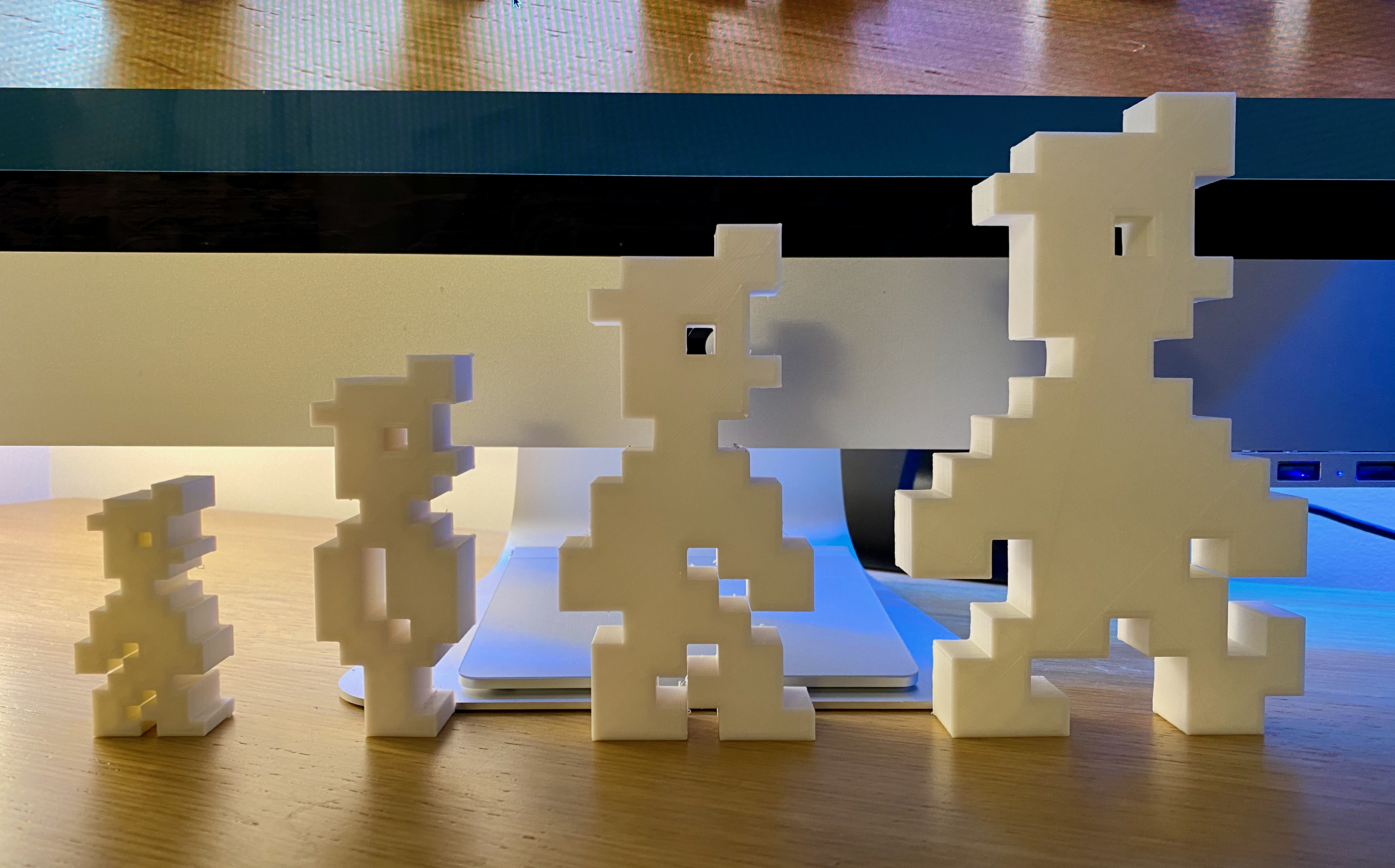 I’d wanted a desk ornament for a while and thought… I have a 3D Printer, CAD Software why not? in under Ten minutes I had the prototypes drafted in, exported to STL (Standard Tessellation Language) and imported into Cura Slicer, about 20+ hours later (over a few days). I have the prints below… My thinking of the evolution of man…