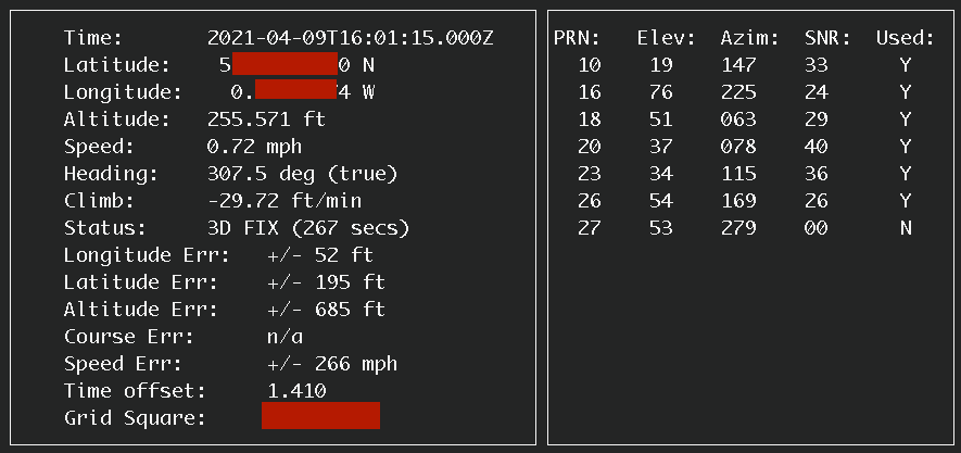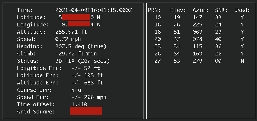 Once the GPS has a lock on position you will see something like below, though I’ve masked my location.