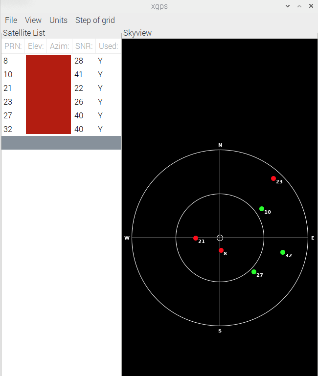 Once all is resolved, you’ll see a sky map like below showing the position of GPS Satellites relative to your position.