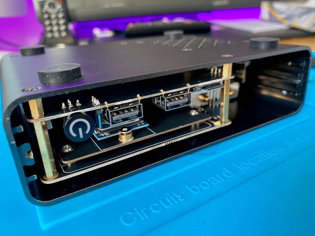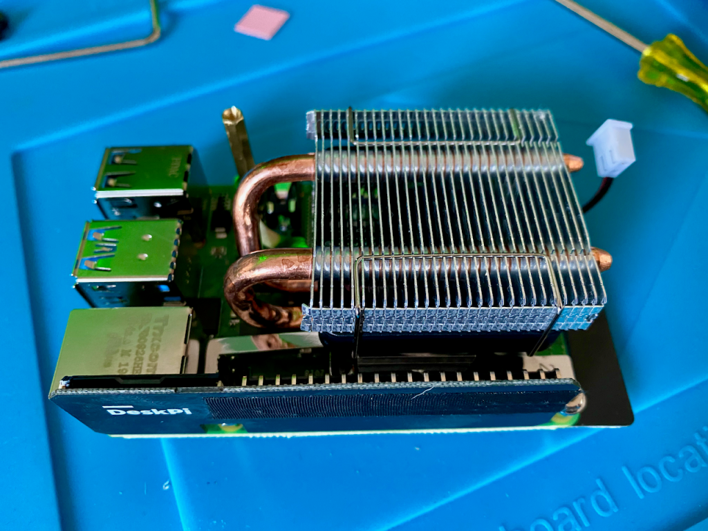 A thing of beauty isn’t she? I was quite excited with the launch of the DeskPi Pro purchased from The PiHut in January this year. Offering bootable SSD/HD, extra USB ports, Controllable Fan and something looking quite sensible for a desktop point of view, not to mention to the Heat Pipes for cooling. No more faffing around with converters and dongles for HDMI Output thanks to the full sized HDMI Ports, built in InfraRed sensor which would be useful for the media side of Pi, what’s not to like? The whole case is designed as a giant heat sink too.