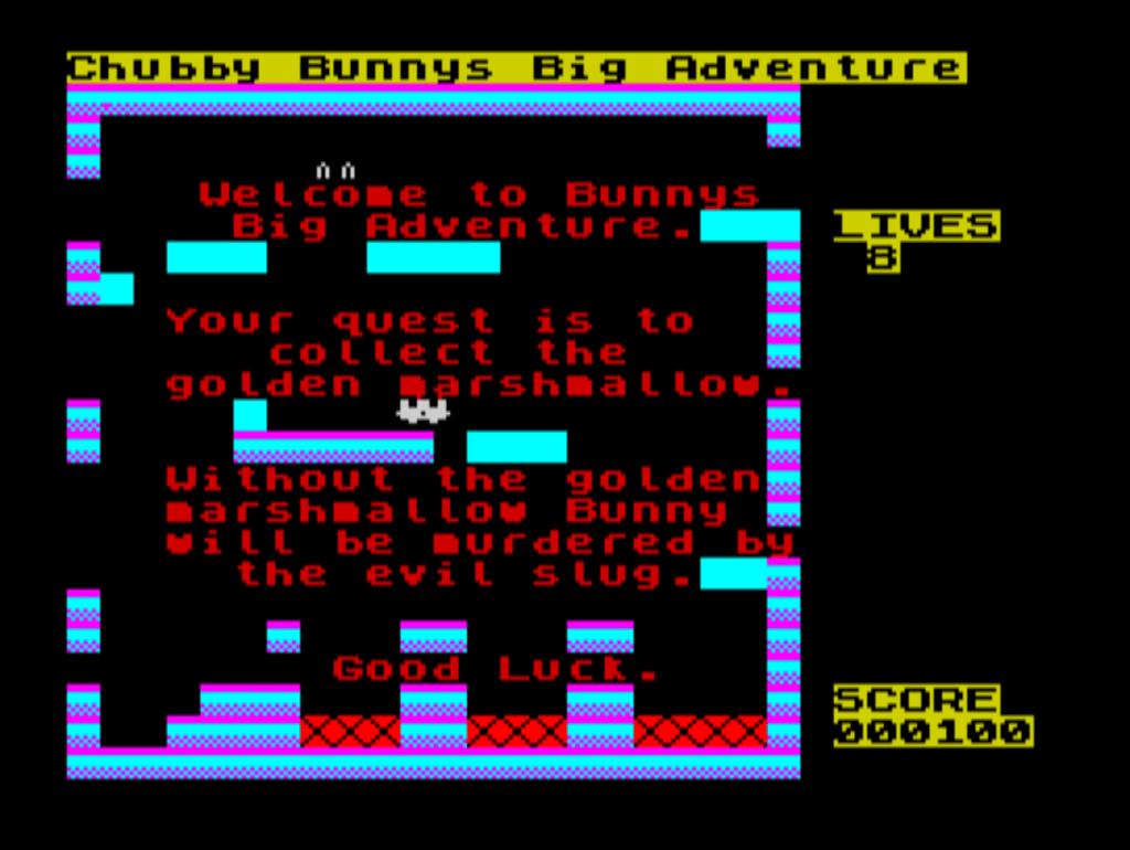 Absolutely Loved this game, it has all the hallmarks of a traditional 80’s game, with some well thought out puzzles, addictive game play, cute graphics and at times the right level of frustration and “Just one more go“. Starting with nine lives, believe me you’re going to need them all! Search for the golden marshmallow before the evil slug murders you, avoiding various meanies, nasties, lava and traps that you need to navigate to reach the end. I loved the use of particle effects on our Hero (made me think of Stink Bunny!) and creative use of sound too!