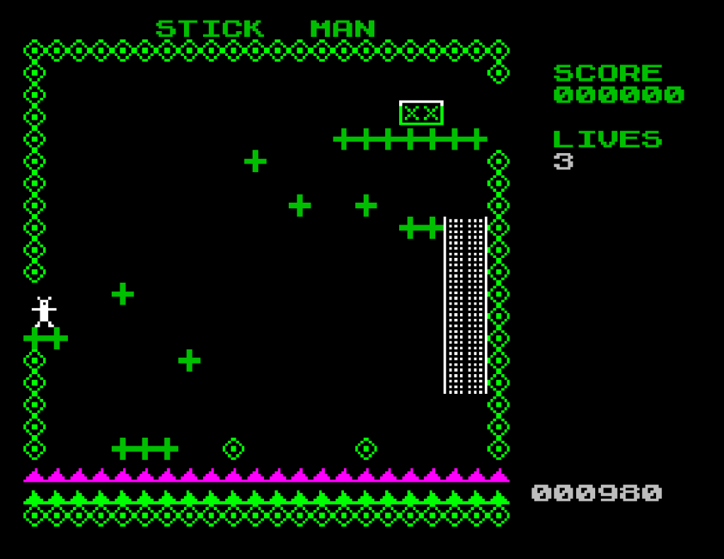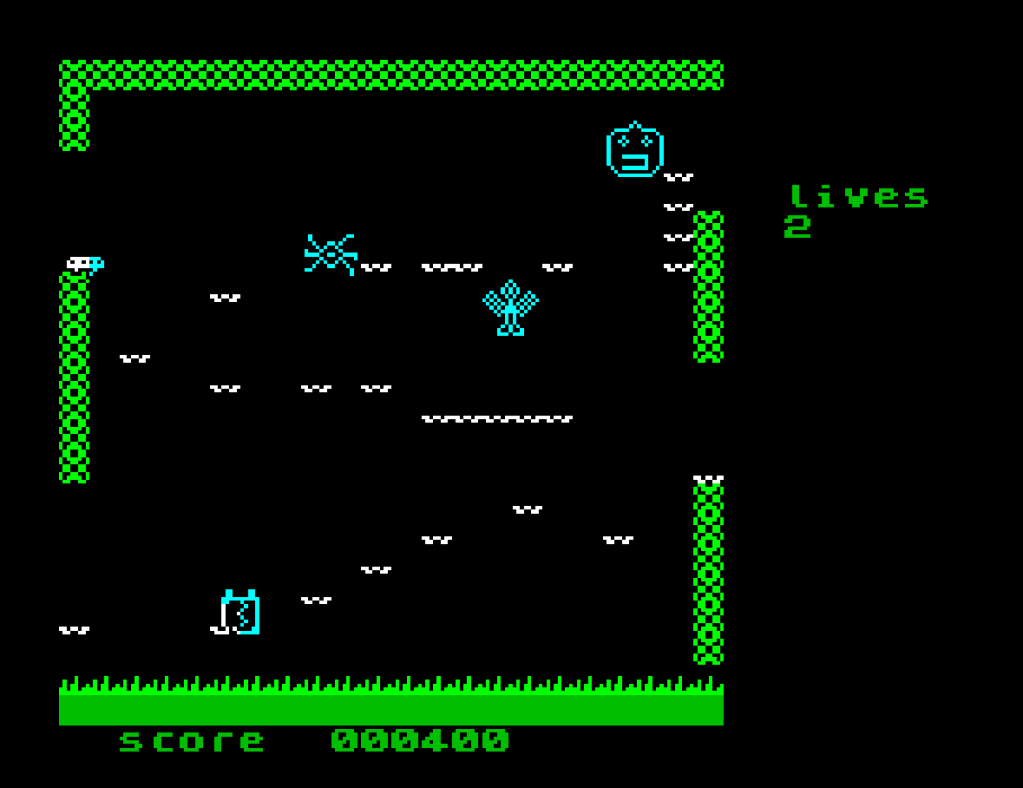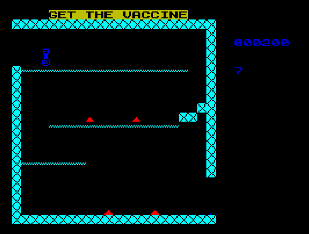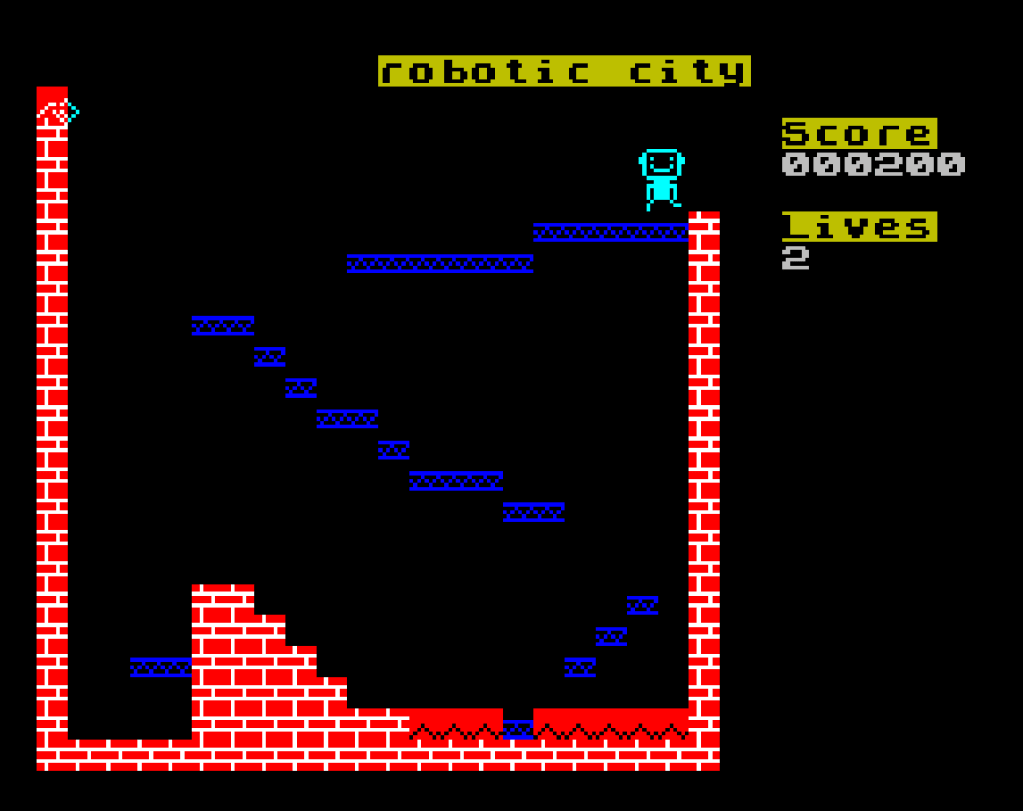Very addictive with again some great level designs, in the spirit of 80’s gaming, the coder also includes moving platforms in addition to sound effects, a myriad of enemies trying to stop you reaching the end and prevent the computer from exploding.