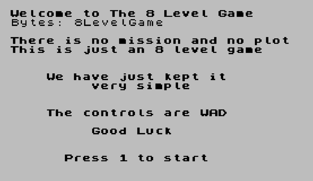 Simply titled, the Eight Level Game, no plot, no back story, just complete all eight levels! Sounds easy enough doesn’t it?