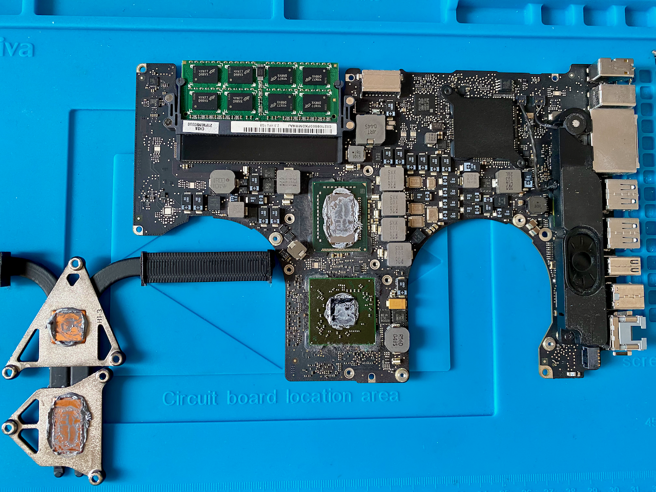 I cleaned up the CPU and GPU, re-applying thermal paste and reseating the heatsinks. Not something for the faint of heart, sadly that didn’t resolve the issue when the GPU heated up. The diagnostics tests completed as expected.