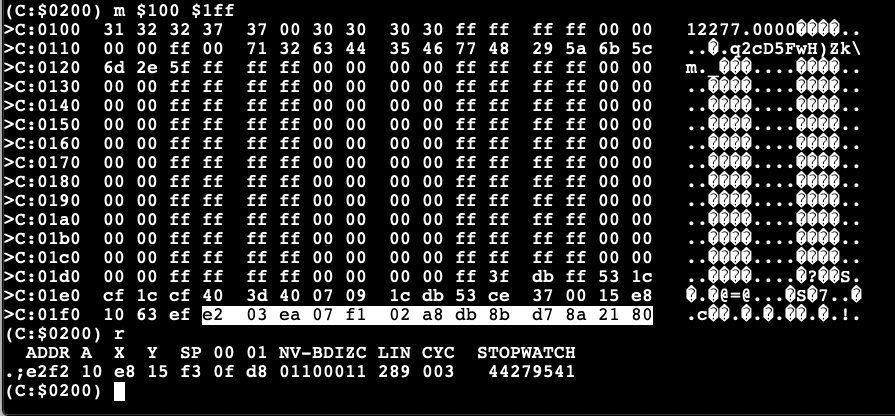 Could the designers use a different address? Yes and No… This trick only works for the first block of data loaded into memory, the Stack pointer can not be guaranteed to point to an EVEN Address, as a hacker could push a value on the stack to try and defeat it. To guarantee auto run and minimal interference with the code, identical values need to be pushed. $0303 wouldn’t work as the kernel firmware loader only loads 256 byte blocks at a time, and 0101 would run the risk of corrupt data with firmware tables stored below $0122.