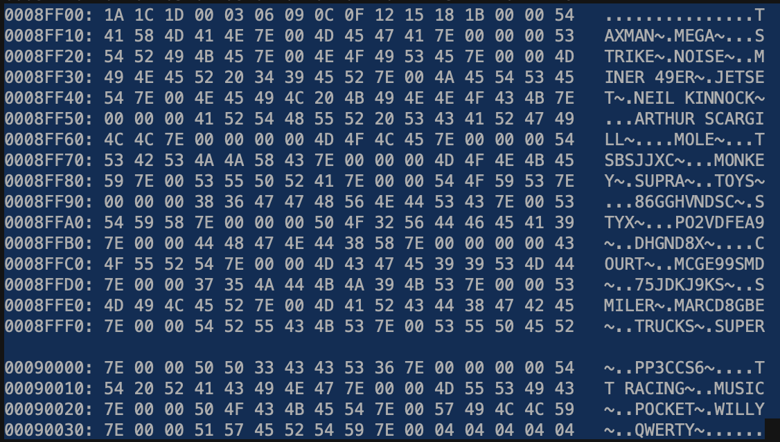 Having dumped the Cartridge it seem rude not to have a peek at the game code, so… I did, lo and behold I find a simple clear text password table.