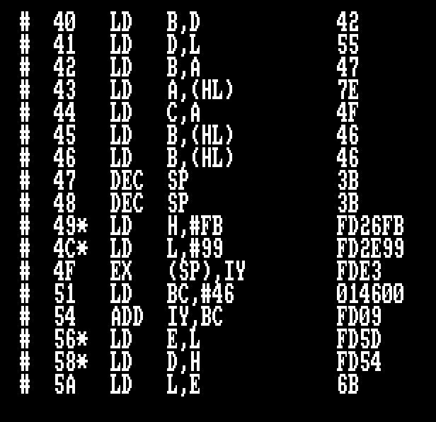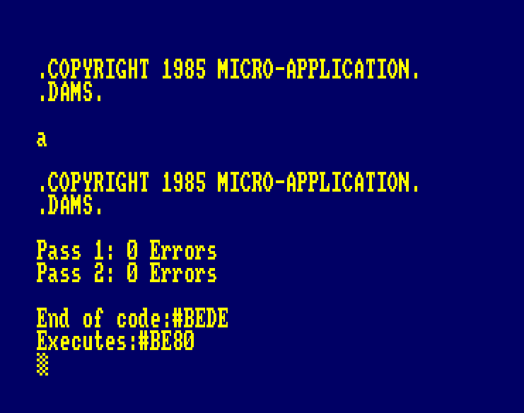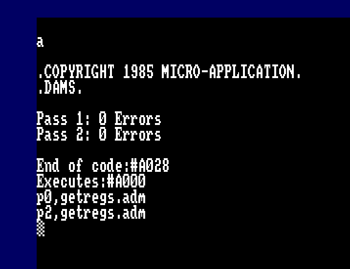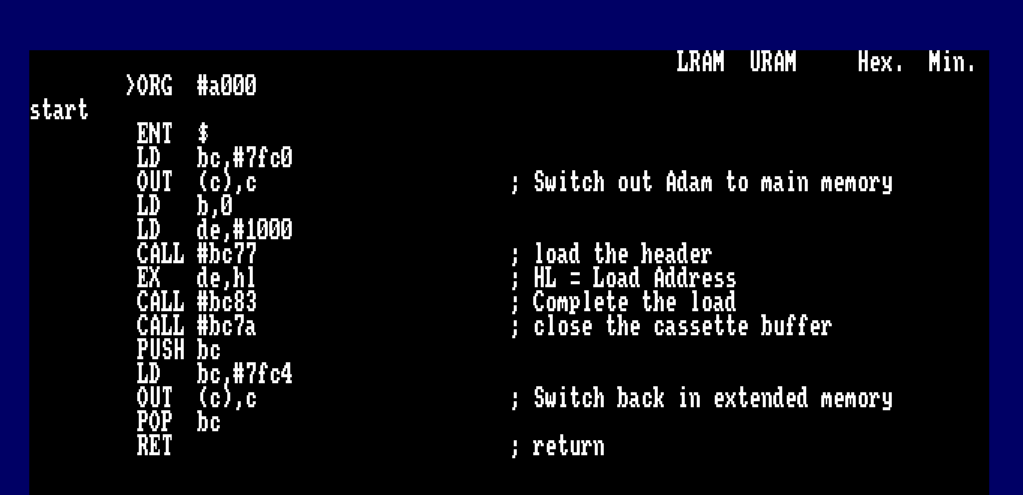 Compared to other Assemblers, ADAM doesn’t use “ for DEFM Statements (Saving bytes), but doesn’t allow leading spaces in messages. If you are following along with an emulator’s built in assembler or MAXAM ROM etc… you may want to add Quotes around DEFM messages. If you’re used to adding double quotes around DEFM it will fail in ADAM as it will assembler that as bytes too.
