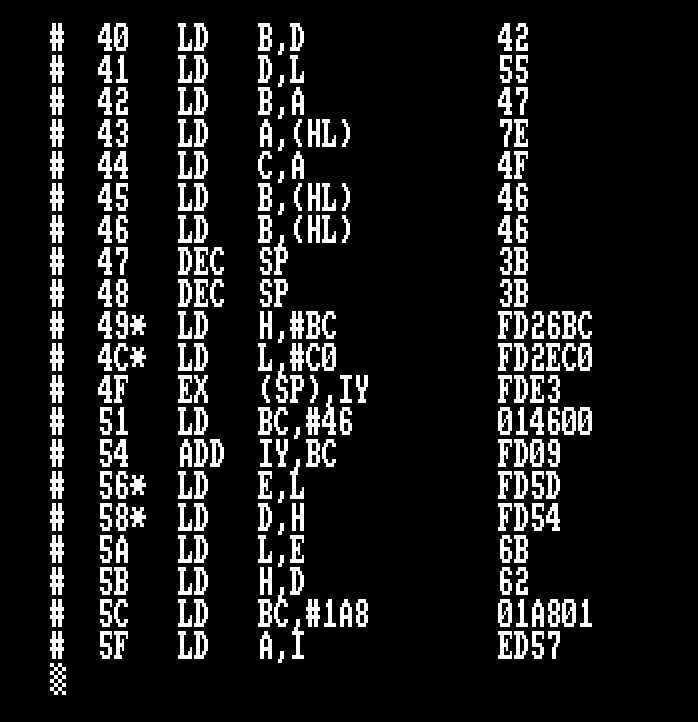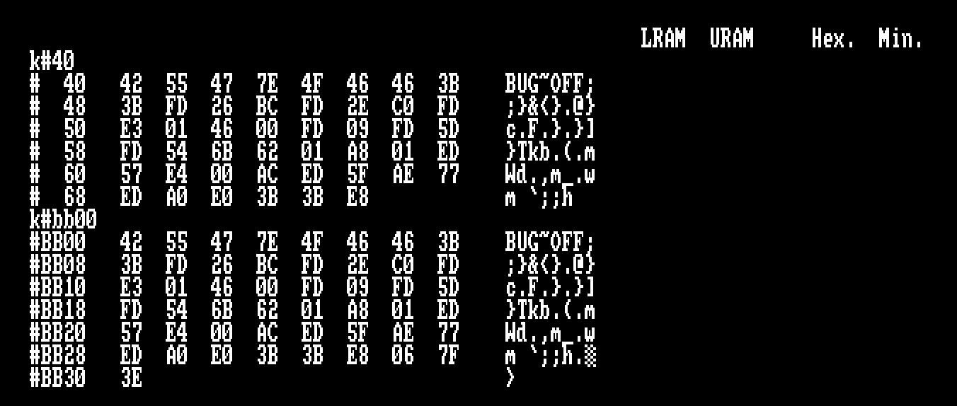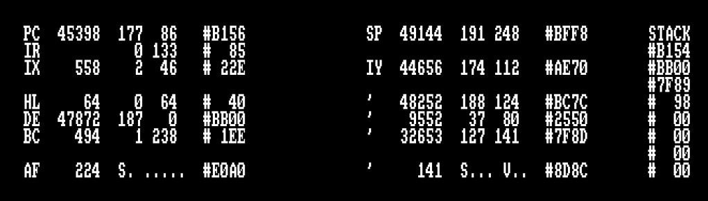 There was an additional trick that wasn’t covered, just after the load of the tertiary loader there’s a small piece of code that listens to the cassette tape before returning control to #BF00, it wrote data to address #8000 for 255 bytes… we’ll explore that in a future post, if there’s sufficient interest of course.
