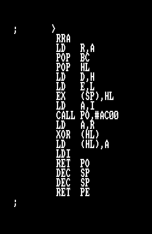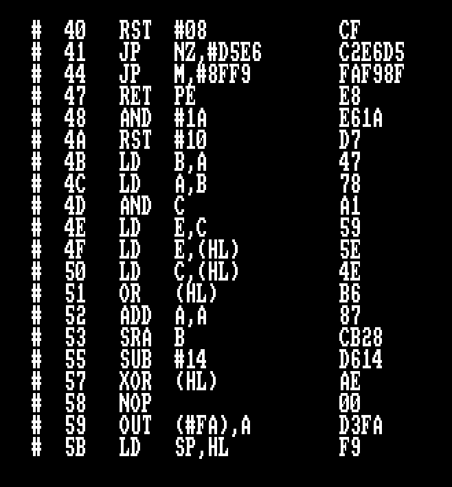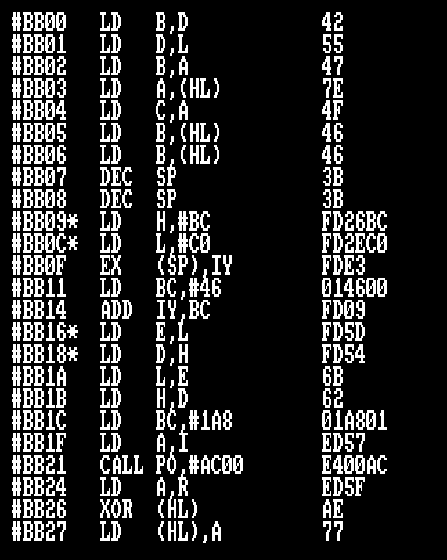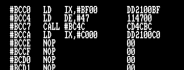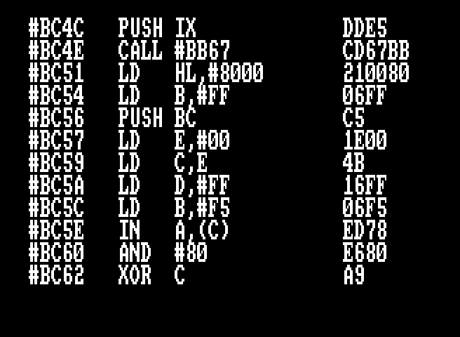 Below is the disassembly of the first part of the initial loader. You may recognise a couple of firmware calls (#BC77, #BC83 and #BC7A) which suggests another piece of code is loaded. We’ll jump back to that shortly…