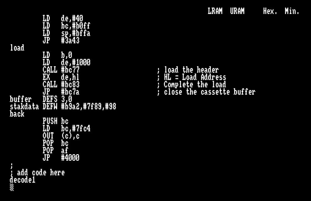 Given the address of the tape loader is within bounds of the CPC’s BASIC Memory Range, we could load the “Loader” from basic, or from assembler… Given we’re going to be working in assembler from now on, we may as well get started with simple loader code.
