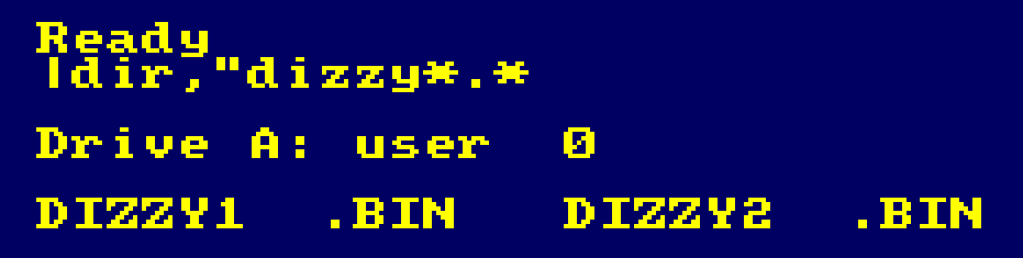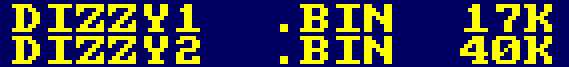 When you restart your Amstrad CPC, you will find on your disk two files, Dizzy1 and Dizzy2