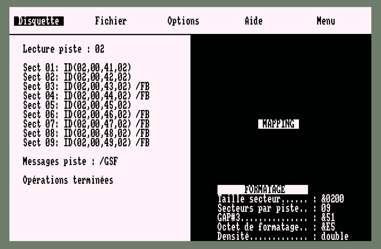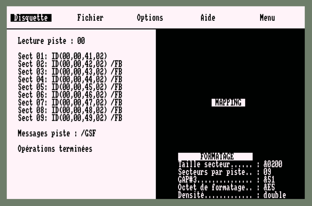 The protection system would then implement a number of tricks, such as TRACK 1 might remain Unformatted, or contain non standard format information. Game Data and code would be stored on Tracks with a single sector of size 4KB, with the “Protected Track” containing an Invalid format. This meant that standard Amstrad CPC Disc-copy programs in CPM or UTOPIA etc would fail.