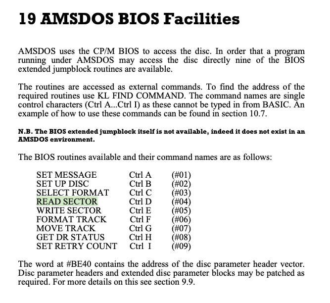 Previous systems used a file to load another file we could easily access via BASIC, however the CPC Doesn’t provide a NATIVE BASIC command to read sectors.