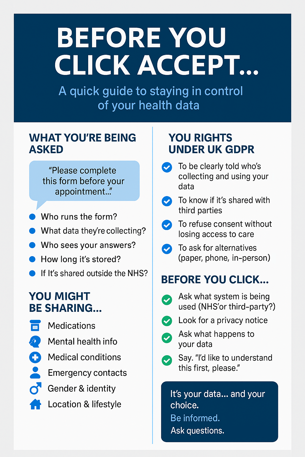 And if something doesn’t feel right — you can always raise it with the practice manager, or contact the Information Commissioner’s Office (ICO) for guidance.