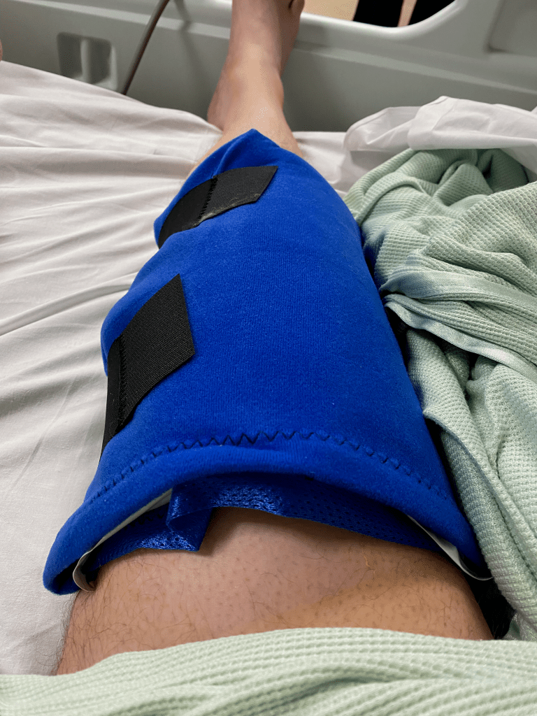 The stairs were a good distance away. He fetched a wheelchair, but didn’t factor in the challenge of transporting someone tall with a leg that couldn’t bend. I’m 6’5″, and post-op my knee wouldn’t flex enough to rest comfortably on the footplate. He looked irritated by this — as if it was a personal inconvenience — but eventually found an insert to support my outstretched leg.